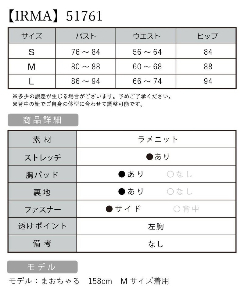 B.W.Hの3サイズは平置き計測した数字を2倍して記載してあります。