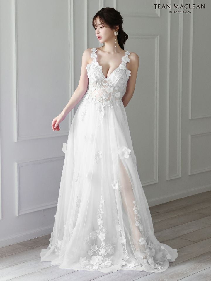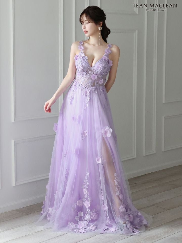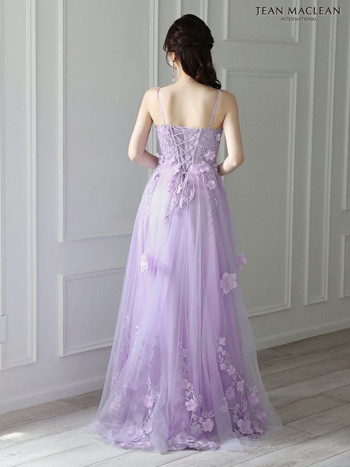 3. [JEANMACLEAN/ジャンマクレーン] 高級 バースデーフラワー刺繍ノースリーブAラインロングドレス