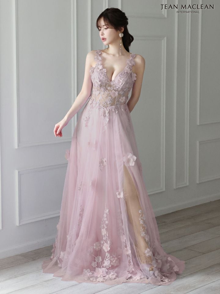 4. [JEANMACLEAN/ジャンマクレーン] 高級 バースデーフラワー刺繍ノースリーブAラインロングドレス