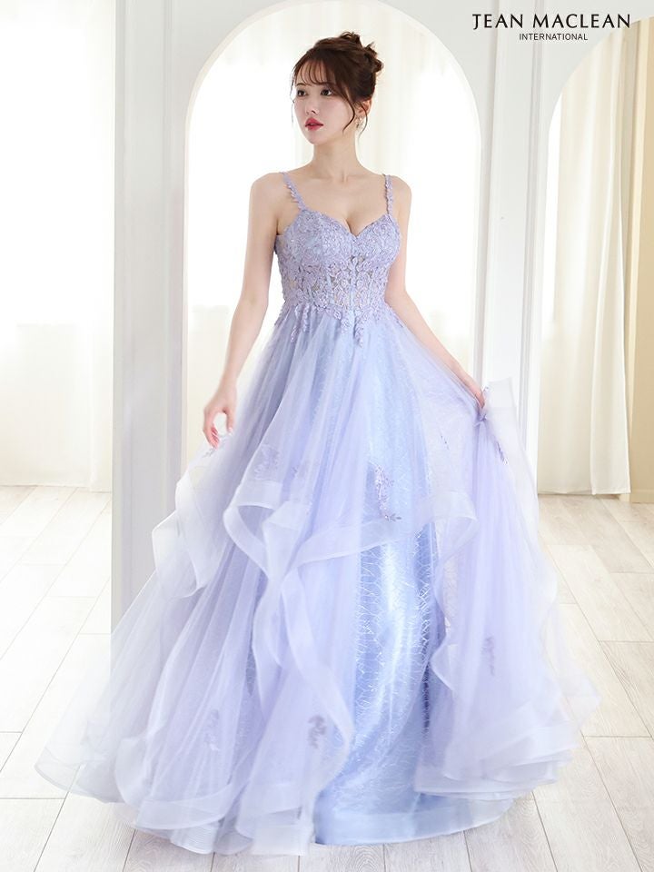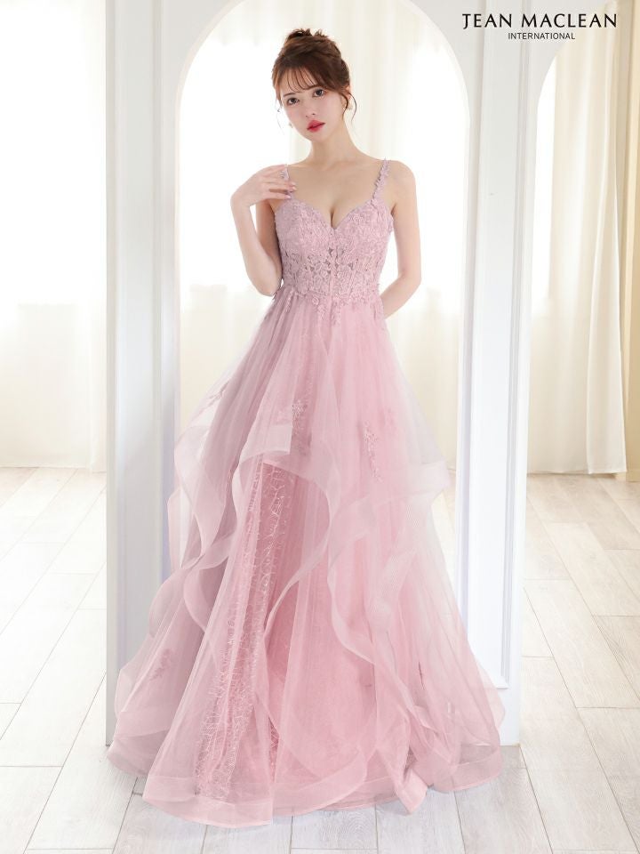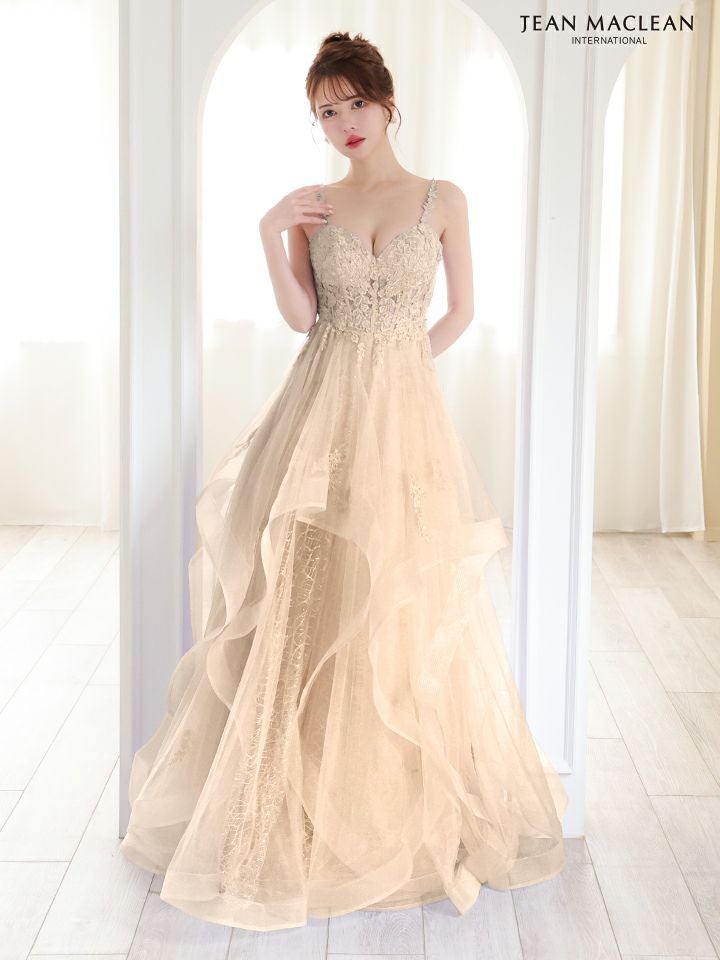 4. [JEANMACLEAN/ジャンマクレーン] 高級 バースデーキャミソール花柄刺繍レースラメチュールAラインロングドレス