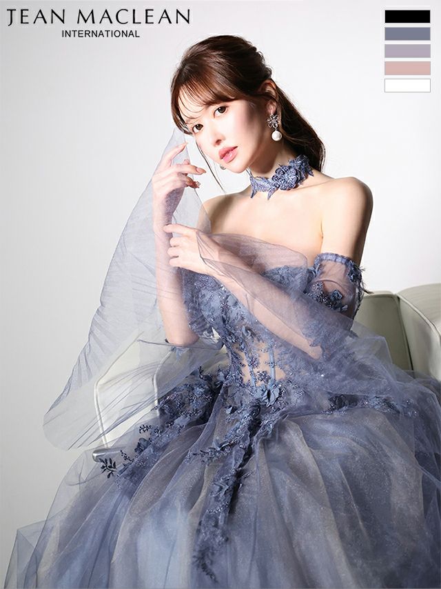 4. [JEANMACLEAN/ジャンマクレーン] 高級 ブランド バースデー Aラインロングドレス 谷間 フレアスリーブ付き ベア 2way シアーコルセット風 3Dフラワー