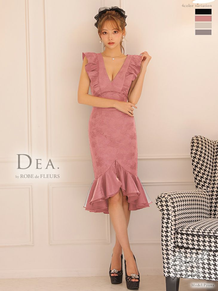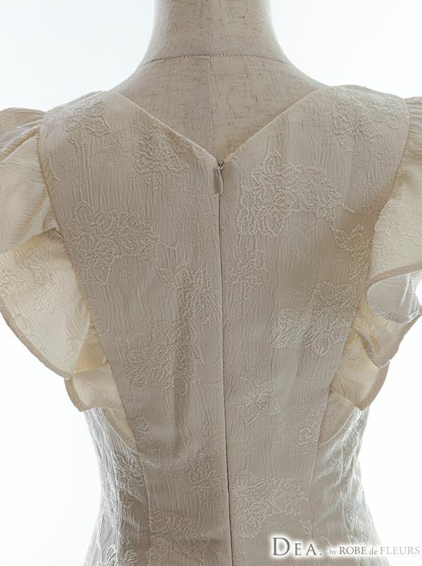4. [DEA.byROBEdeFLEURS/ディアバイローブドフルール] 高級Vネックノースリーブフリルマーメイドワンピースジャガード膝丈ドレス