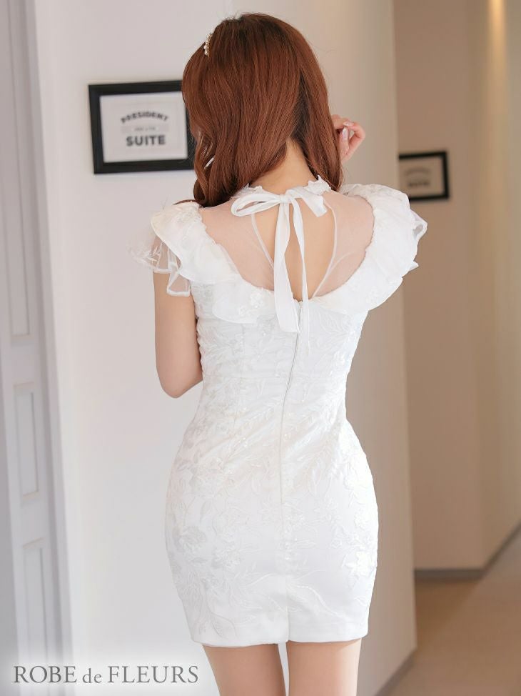 4. [ROBEdeFLEURS/ローブドフルール] 高級ビジューラインVカット×フリル半袖タイトミニドレス