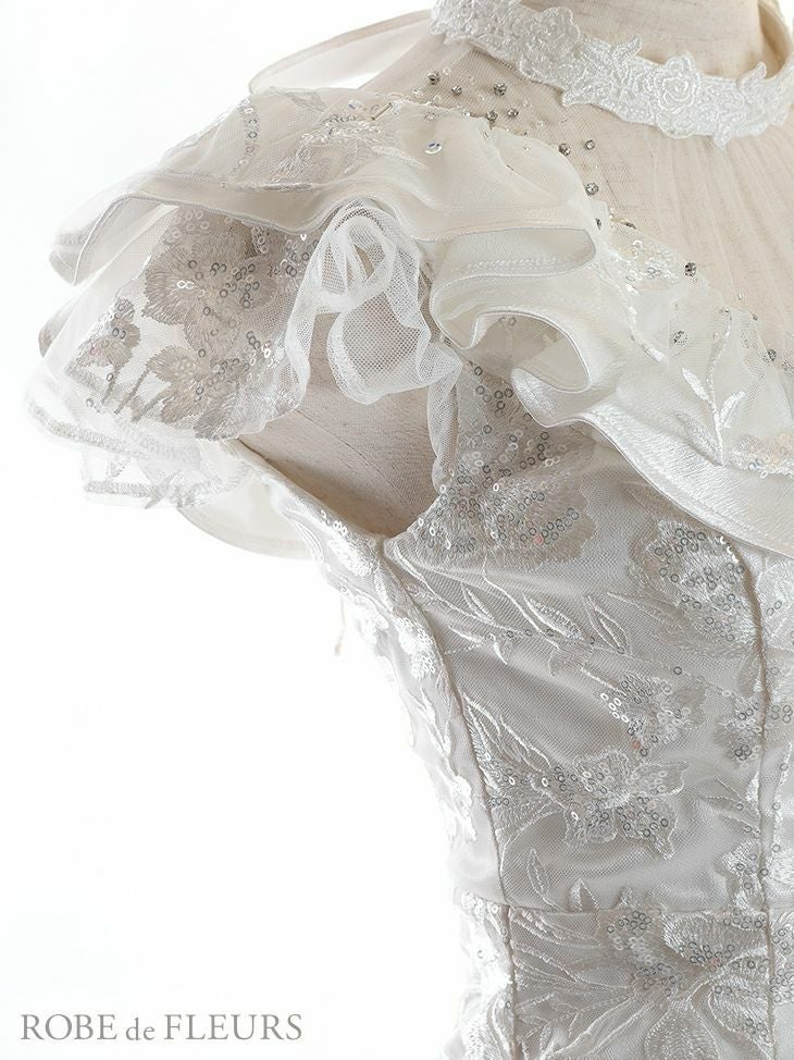 素材 スパンコール付き刺繍レース、サテン、チュール