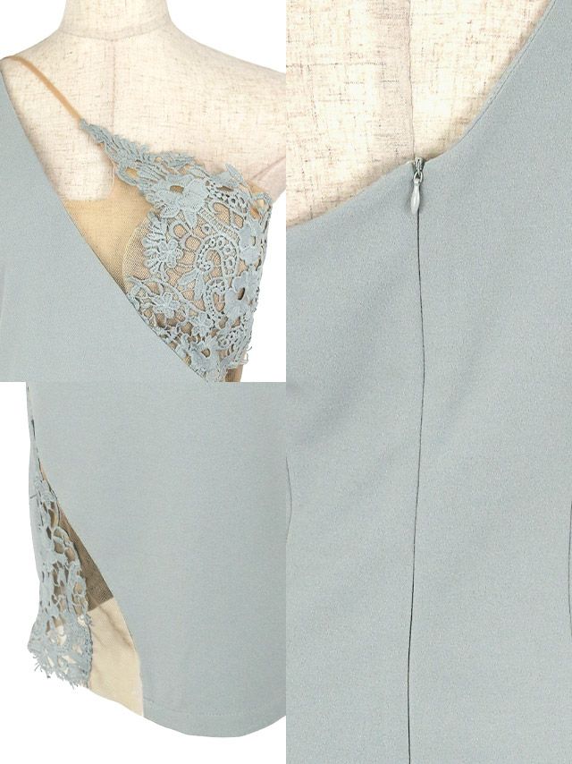 ワンショルダー カットアウト バストシースルー ヌーディーレース 谷間魅せ タイトミニドレスの商品詳細1