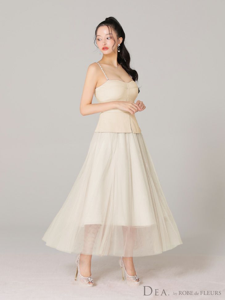 5. [DEA.byROBEdeFLEURS/ディアバイローブドフルール] 高級キャミソールチュールオーガンジーAラインロングドレス