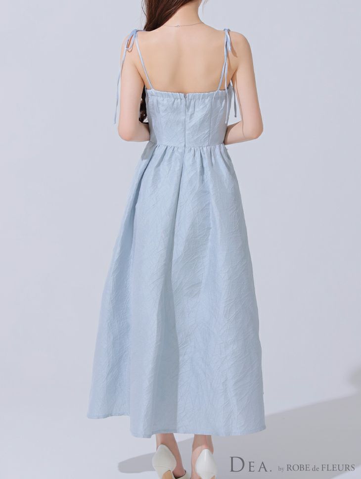 清楚な可愛さを纏う♡ [DEA.byROBEdeFLEURS/ディアバイローブドフルール] 高級 キャミソール 胸元パール ジャガード サテン Aラインロングドレス