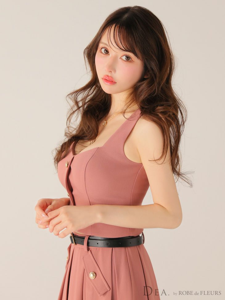 ウエストベルトでコーデを引き締める♡ [DEA.byROBEdeFLEURS/ディアバイローブドフルール] 高級 ブランド Aラインロングドレス キャミソール セットアップ スリット ウエストベルト フロントボタン
