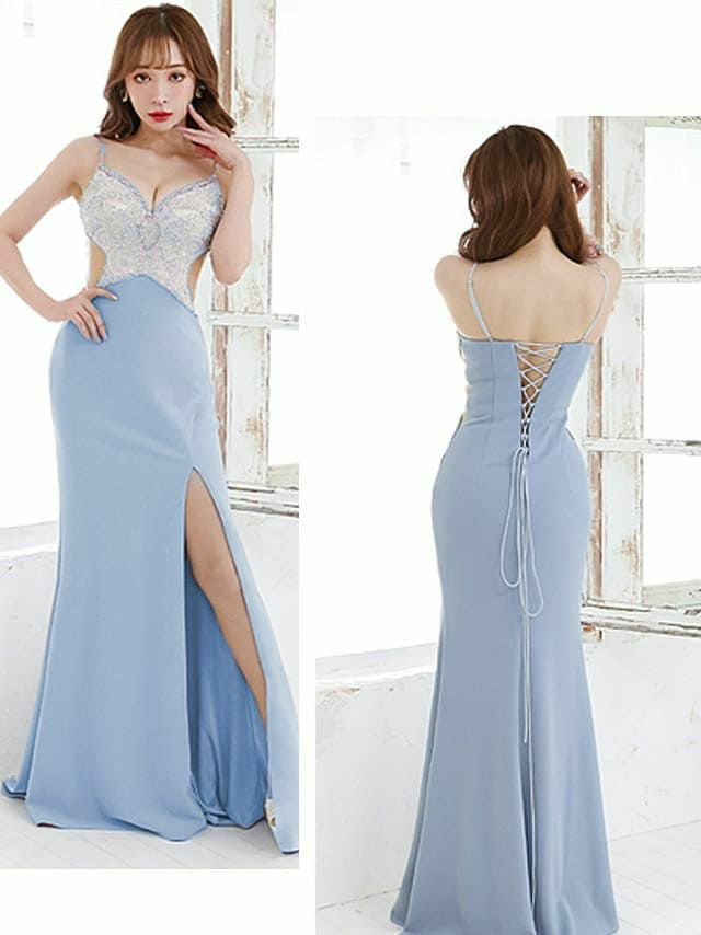 4. [IRMA/イルマ] 高級バスト刺繍ビジューウエストシースルーサイドドレープキャミソールくびれタイトロングドレス
