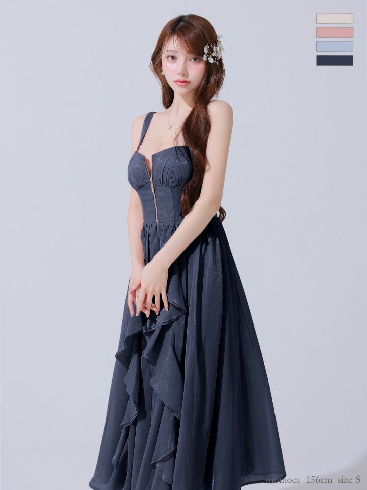 他の画像を見る ティアードフリルで主役級の可愛さ♡ [DEA.byROBEdeFLEURS/ディアバイローブドフルール] 高級 ブランド ワンピース Aラインロングドレス 谷間 キャミソール カシュクール風 ティアードフリル ¥ 32,780 税込 お気に入りに追加