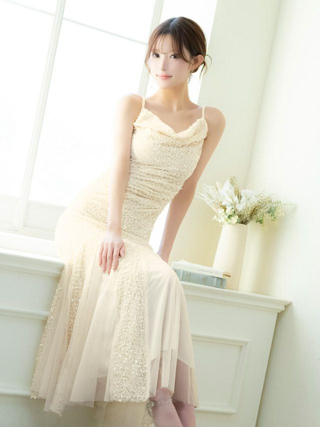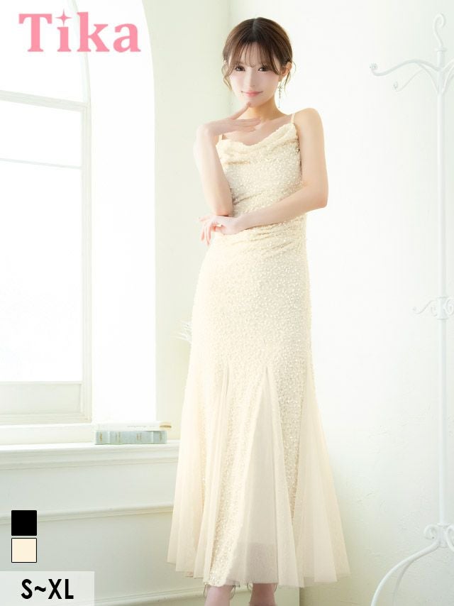 2/12新作★ラグジュアリーな輝きを纏う☆ ロングドレス バースデー タイト 大人 マーメイド シフォン キャミソール キラキラ スパンコール 黒 キャバドレス (黒嵜菜々子着用) [tk-ld892617]