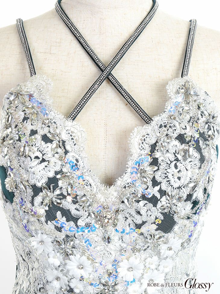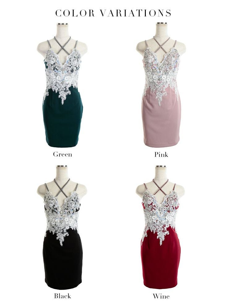 キャバドレス ミニドレス [SALE] [ROBEdeFLEURSGlossy/ローブドフルールグロッシー] 高級刺繍レースキャミソールストレッチタイトミニドレス