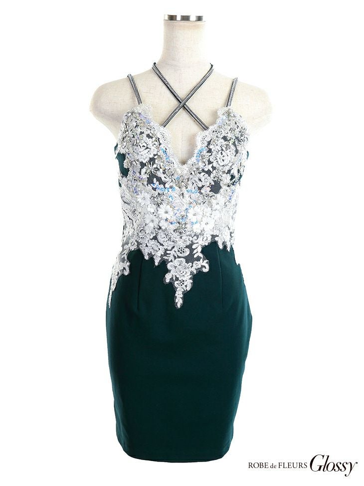キャバドレス ミニドレス [SALE][ROBEdeFLEURSGlossy/ローブドフルールグロッシー] 高級刺繍レースキャミソールストレッチタイトミニドレス