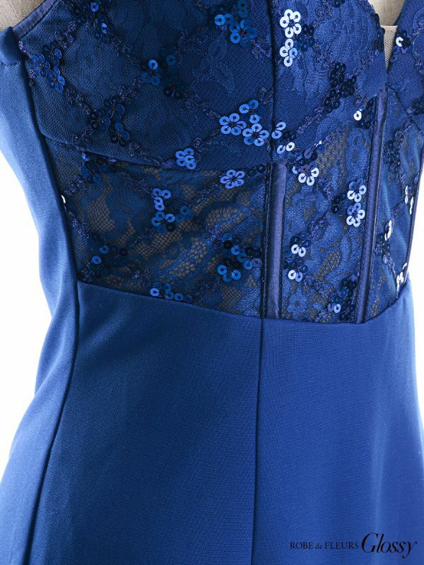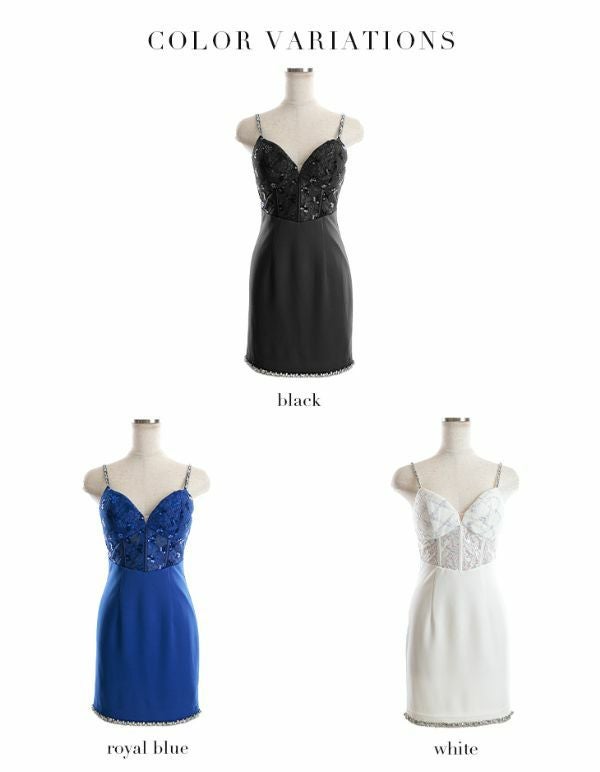 5. SALE [ROBEdeFLEURSGlossy/ローブドフルールグロッシー] 高級スパンコール刺繍ウエストレース切替ビジューキャミソールタイトミニドレス