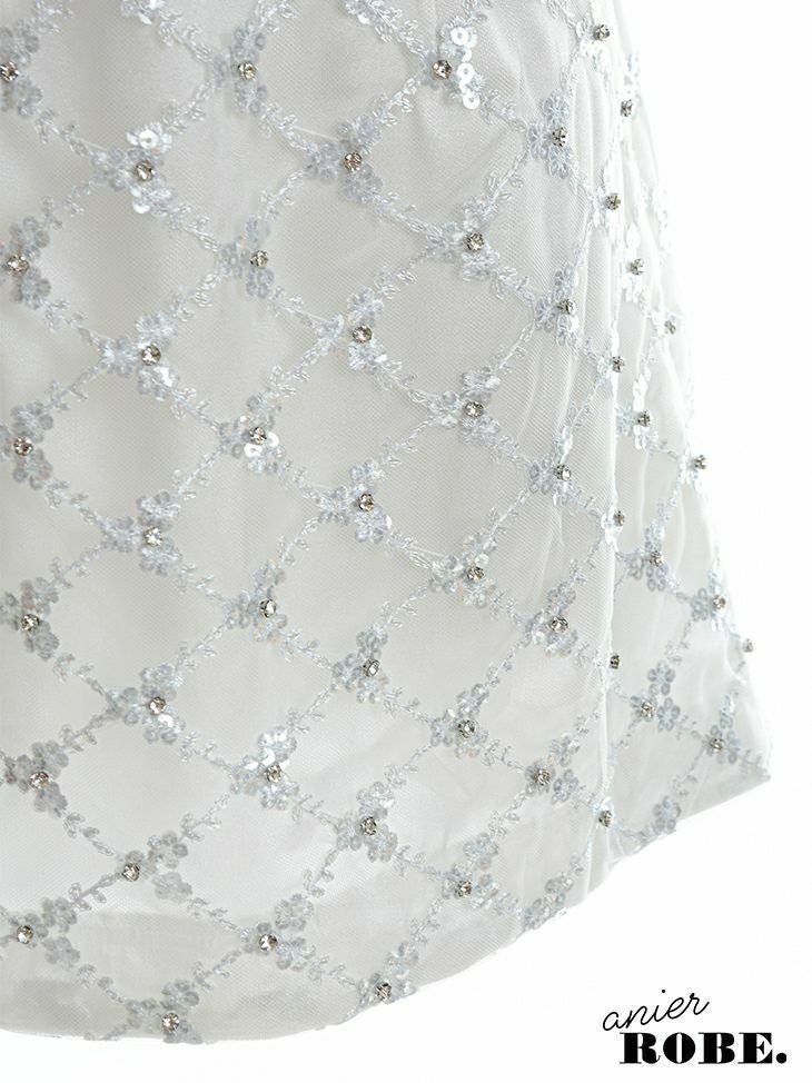 4. [ANIER./アニエル] 高級ビジュー付きレースデザインサテンキャミソールミニドレス