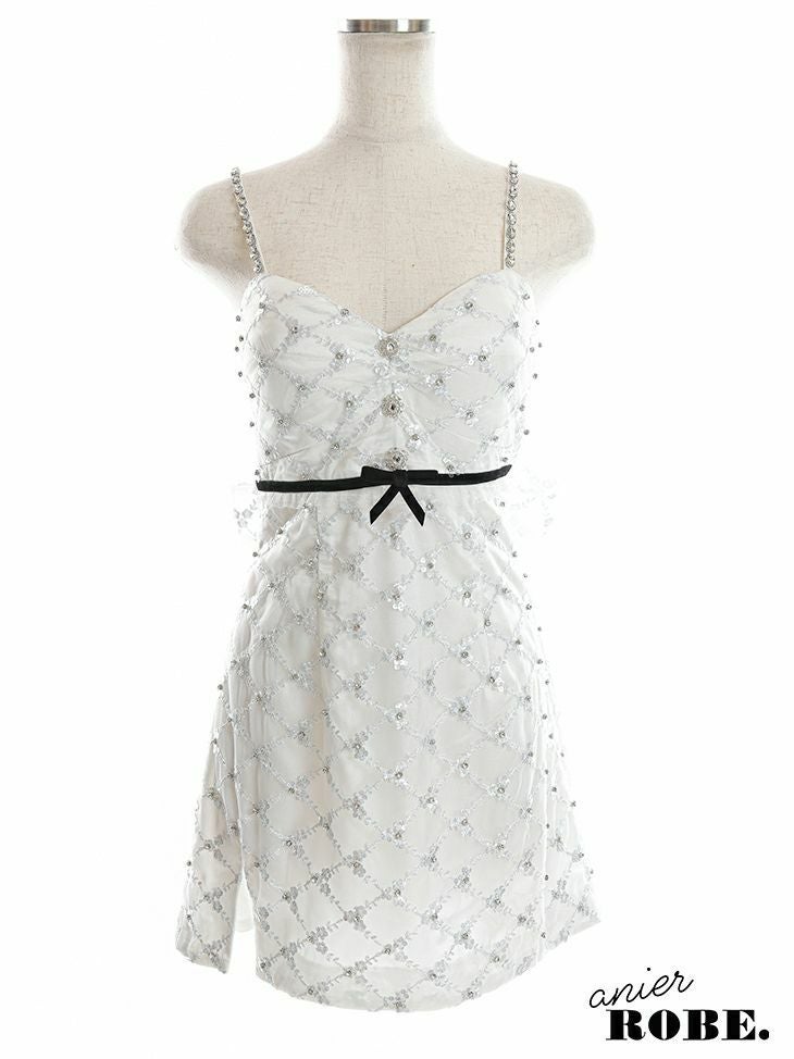 リボンとビジューがかわいい☆ [ANIER./アニエル] 高級ビジュー付きレースデザインサテンキャミソールミニドレス
