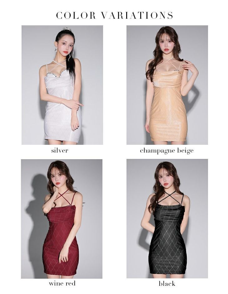 他の画像を見る ホルターリボン付きでアレンジできる☆ [ROBEdeFLEURSGlossy/ローブドフルールグロッシー] 高級ラメニットバストビジューキャミソールストレッチタイトミニドレス ¥ 29,480 税込 在庫切れ お気に入りに追加