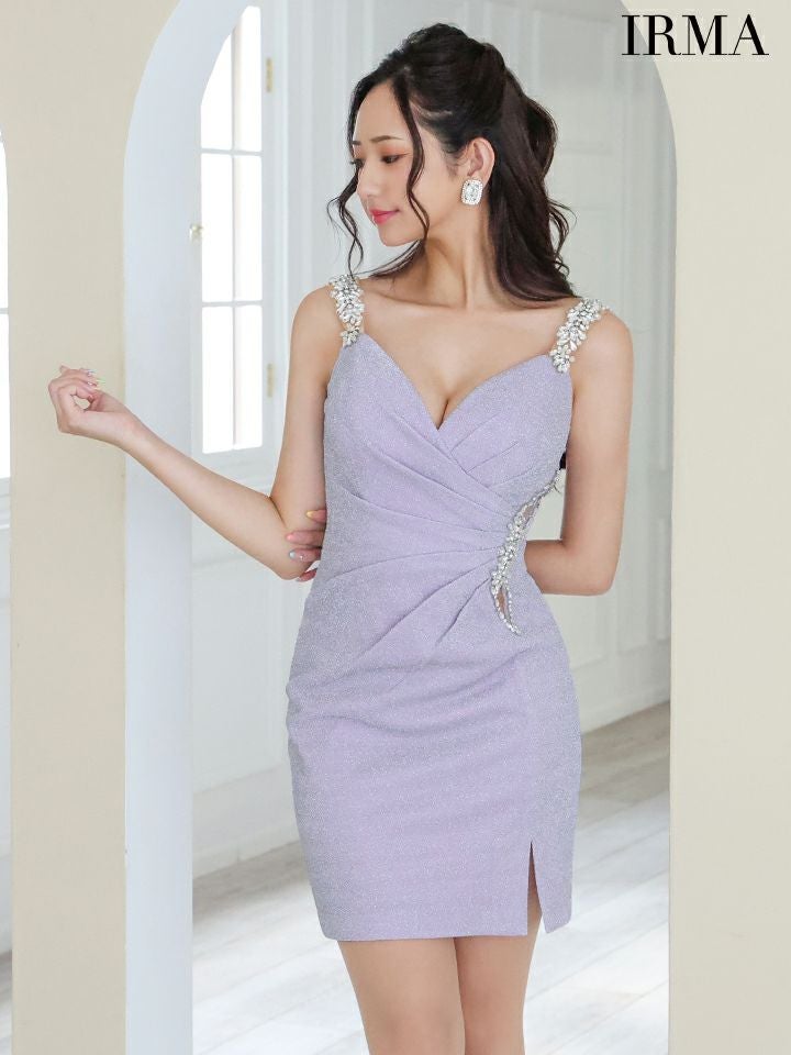 他の画像を見る ビジューが煌めくデザイン☆ [ROBEdeFLEURS/ローブドフルール] 高級 バストカット キャミソール ラメビジューショルダー ガーリー リボン 谷間魅せ タイトミニドレス ¥ 28,380 税込 在庫切れ お気に入りに追加