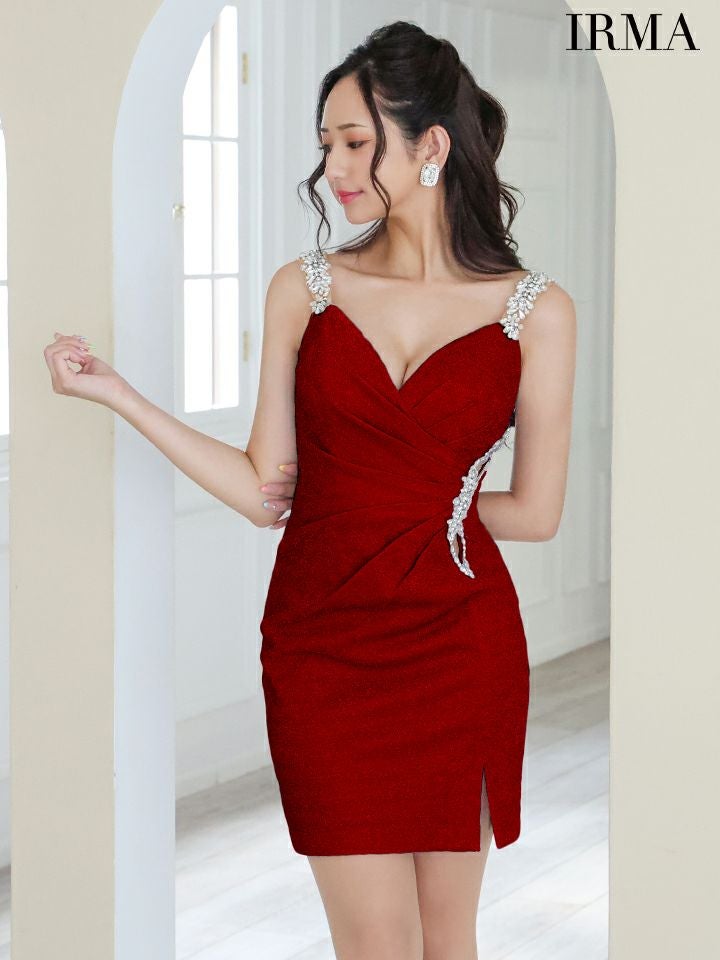 他の画像を見る シンプルなワンカラーで大人sexyに☆ [Angel-R/エンジェルアール] 高級キャミソールタックデザインビジューくびれタイトミニドレス ¥ 29,480 税込 在庫切れ お気に入りに追加