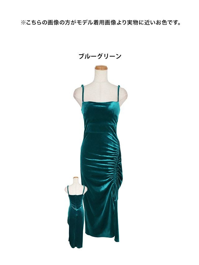 ベロアサイド編み上げキャミソール膝丈スリットタイトミニドレス