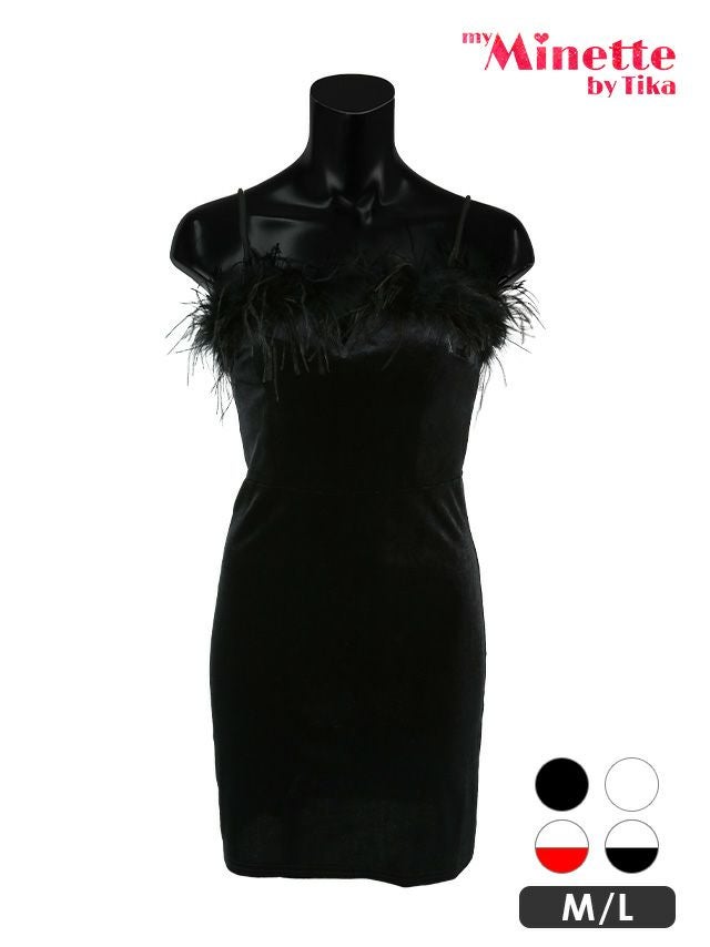 ファー付きベロアタイトキャミドレス