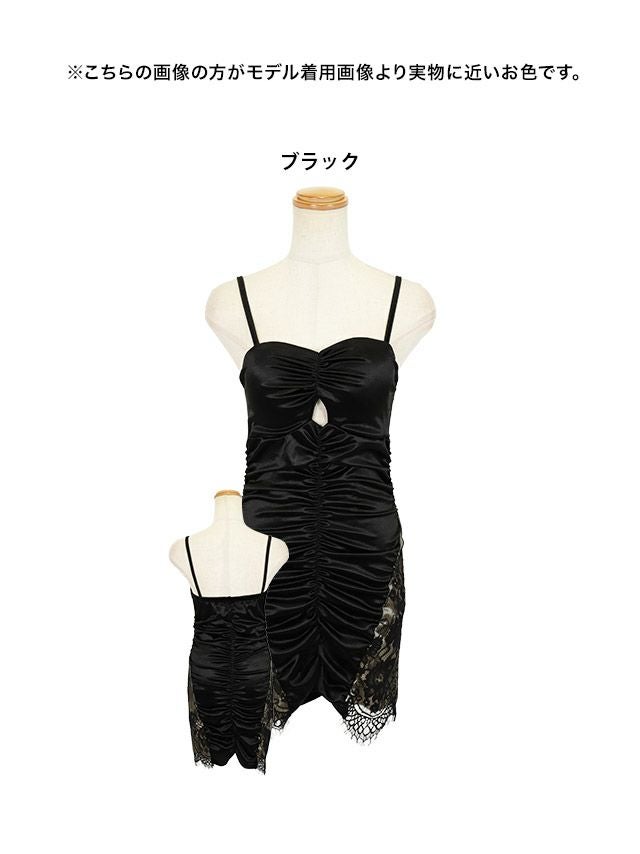 色っぽ美スタイルをメイク♪ キャミソールギャザーカットアウトサイドレース切替タイトミニドレス (せいせい着用)
