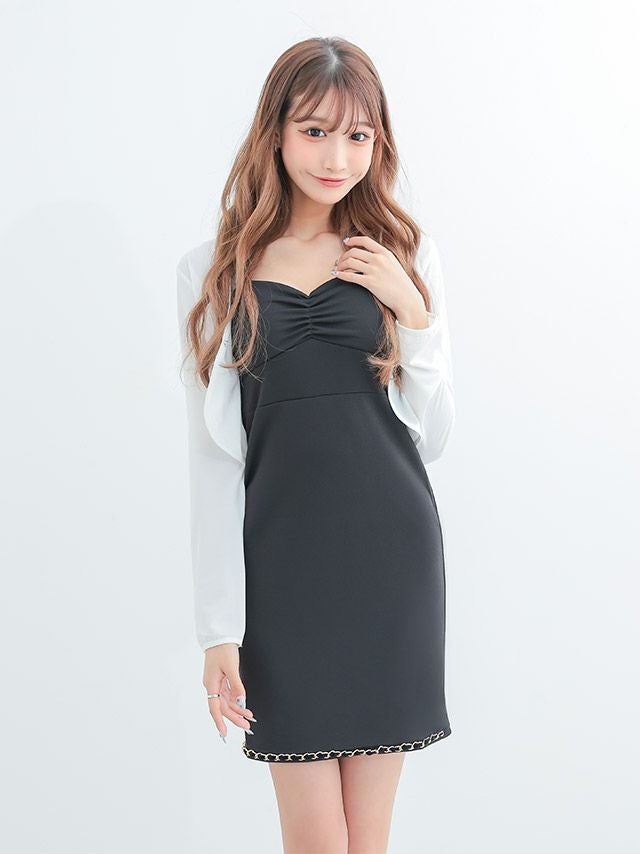 5. キャミソールタイトミニドレス+ホック付き長袖 袖ありショート丈ボレロ (斉藤らな着用)