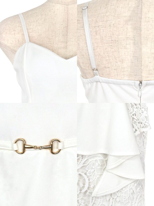 細ベルト付きアシメペプラムキャミソール立体ケミカルレースタイトミニドレスの商品詳細1