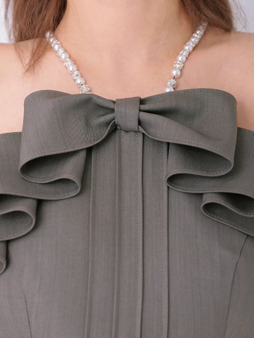 ベアスタイルでも楽しめる2wayドレス♡ 予約商品【4月上旬入荷予定】[Angel-R/エンジェルアール] 高級 ブランド タイトミニドレス 谷間 キャミソール ベア 2way ショルダーリボン チュールレイヤード 立体フラワー