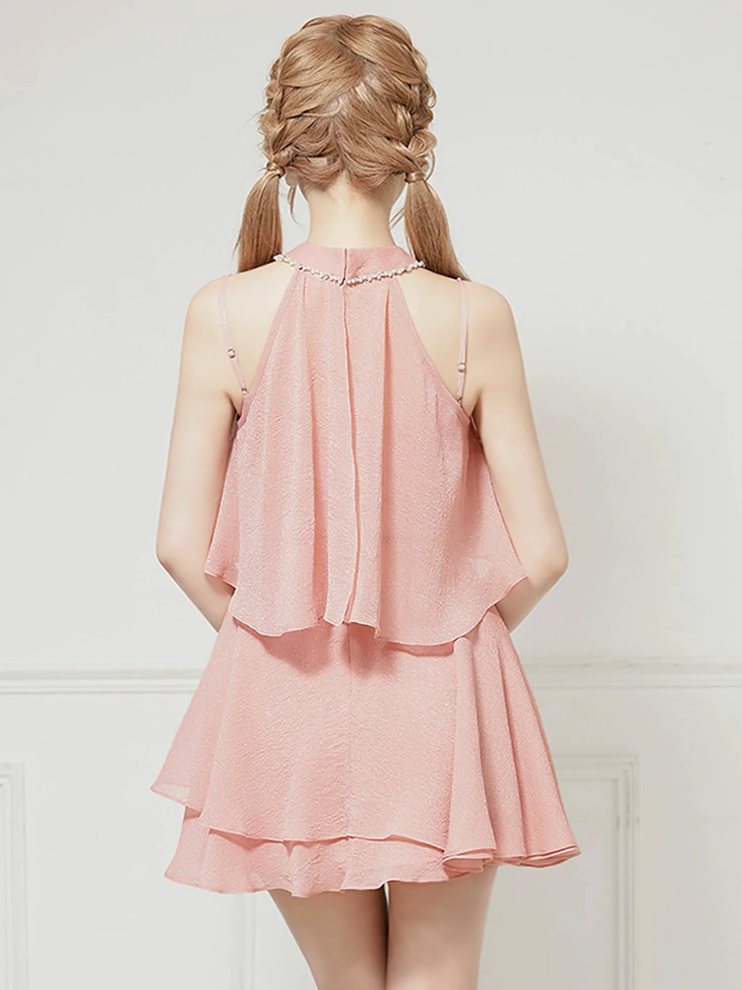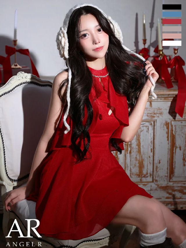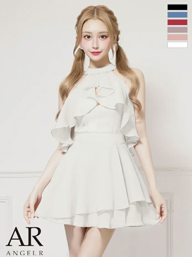 他の画像を見る ふんわりシルエットで魅了する♡ [Angel-R/エンジェルアール] 高級 ブランド Aラインミニドレス 2way ホルターネック パール ビジュー フリル フェミニン (せな着用) ¥ 29,480 税込 お気に入りに追加