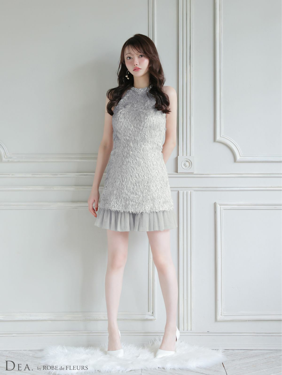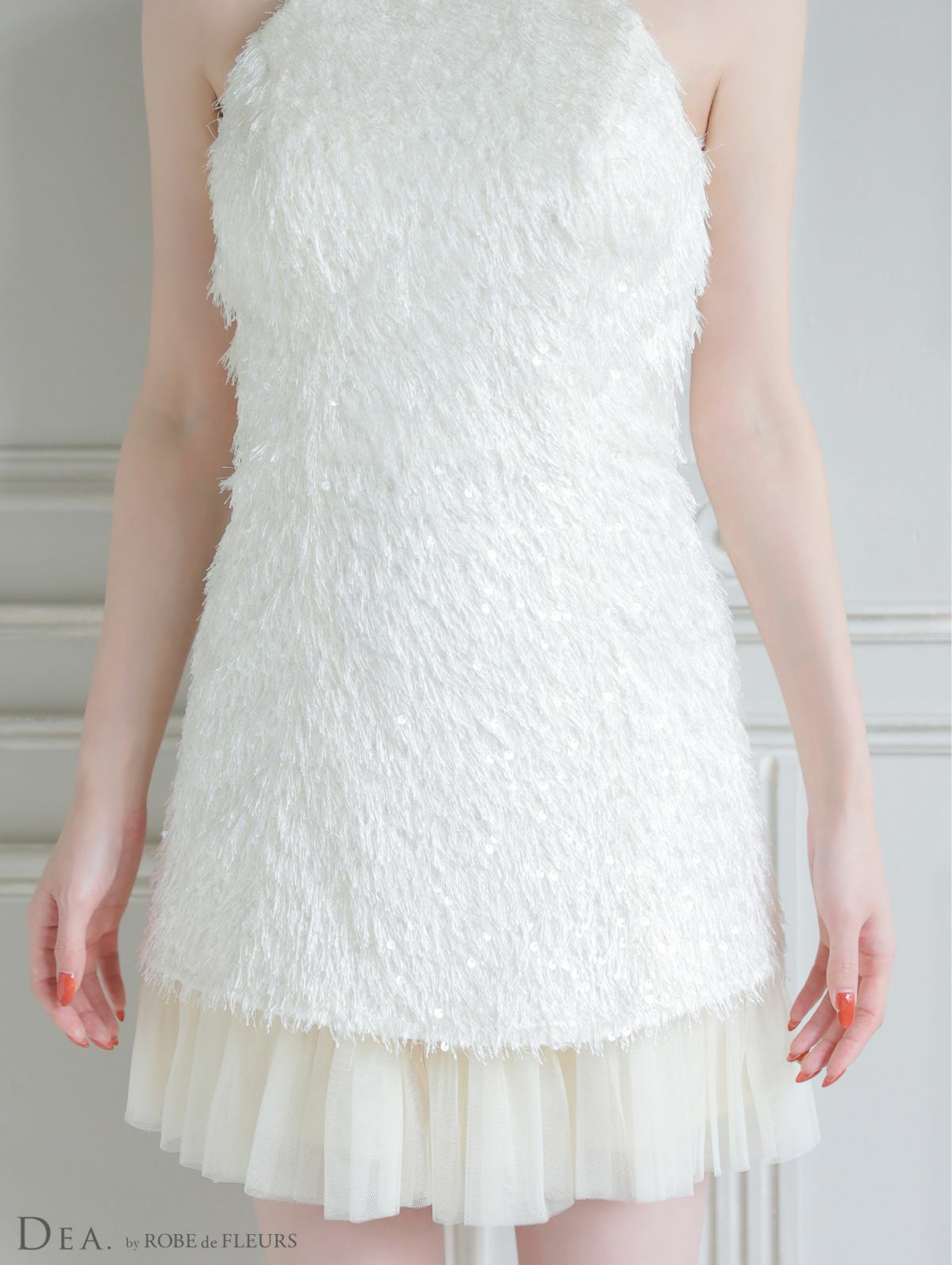 他の画像を見る 透明感のある可愛さを放つ♡ [DEA.byROBEdeFLEURS/ディアバイローブドフルール] 高級 ブランド ワンピース Aラインミニドレス ホルターネック スパンコール フリンジ チュール切替 ¥ 29,480 税込 お気に入りに追加