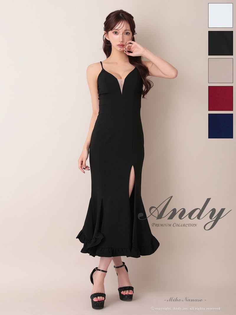 キャバドレス Andy アンディ 高級 キャミソール バストシースルー 谷間魅せ 裾フリル スリット マーメイド タイトロングドレス