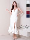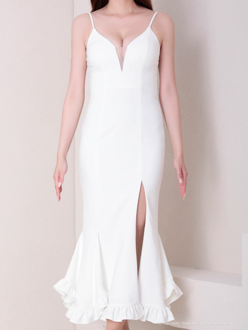 大胆な谷間魅せで視線を集める♪ [Andy/アンディ] 高級 キャミソール バストシースルー 谷間魅せ 裾フリル スリット マーメイド タイトロングドレス
