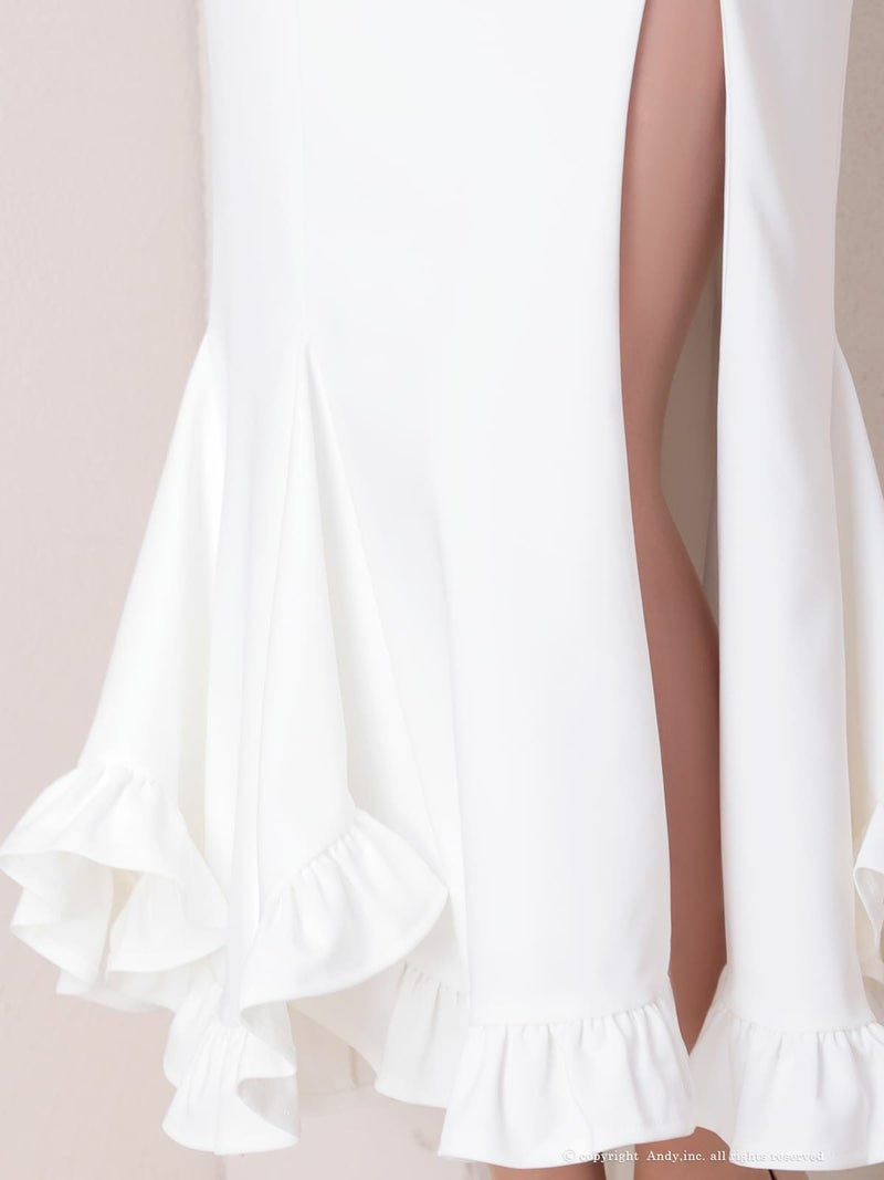 4. [Andy/アンディ] 高級 キャミソール バストシースルー 谷間魅せ 裾フリル スリット マーメイド タイトロングドレス