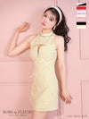 4. [ROBEdeFLEURS/ローブドフルール] 高級 ホルターネック キルティング リボン バストカット ジップ 谷間魅せ フレアミニドレス (伊藤舞雪着用)