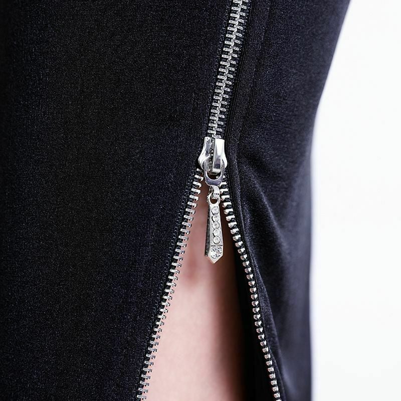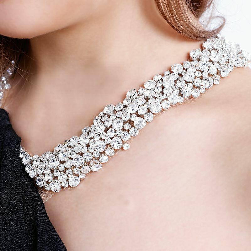 3. [Veautt/ヴュート] 高級 ブランド タイト膝丈ドレス ワンショルダー ネックビジュー ドレープ ファスナースリット (伊藤舞雪着用)