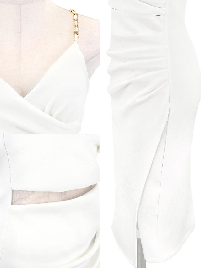 タイト 膝丈ドレス 谷間 シンプル 大人 上品 ストレッチ キャミソール チェーンショルダー ウエストカット シースルー ラップのカラーバリエーション