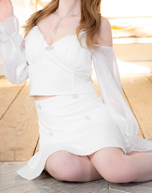 谷間を綺麗に魅せるハートカットでさりげなく色気をプラス。