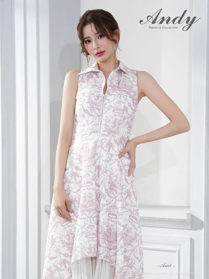5. [Andy/アンディ] 高級 ノースリーブ Aラインロングドレス トワルドジュイ柄  襟デザイン