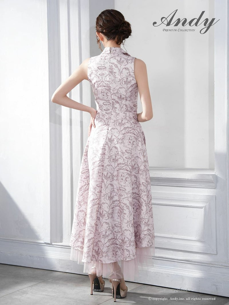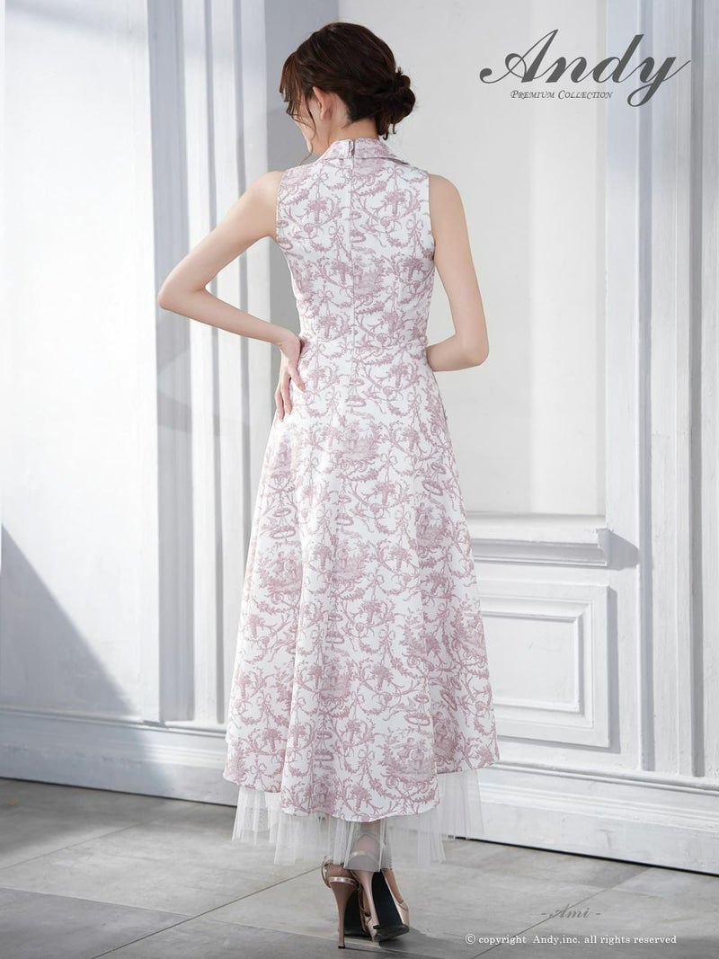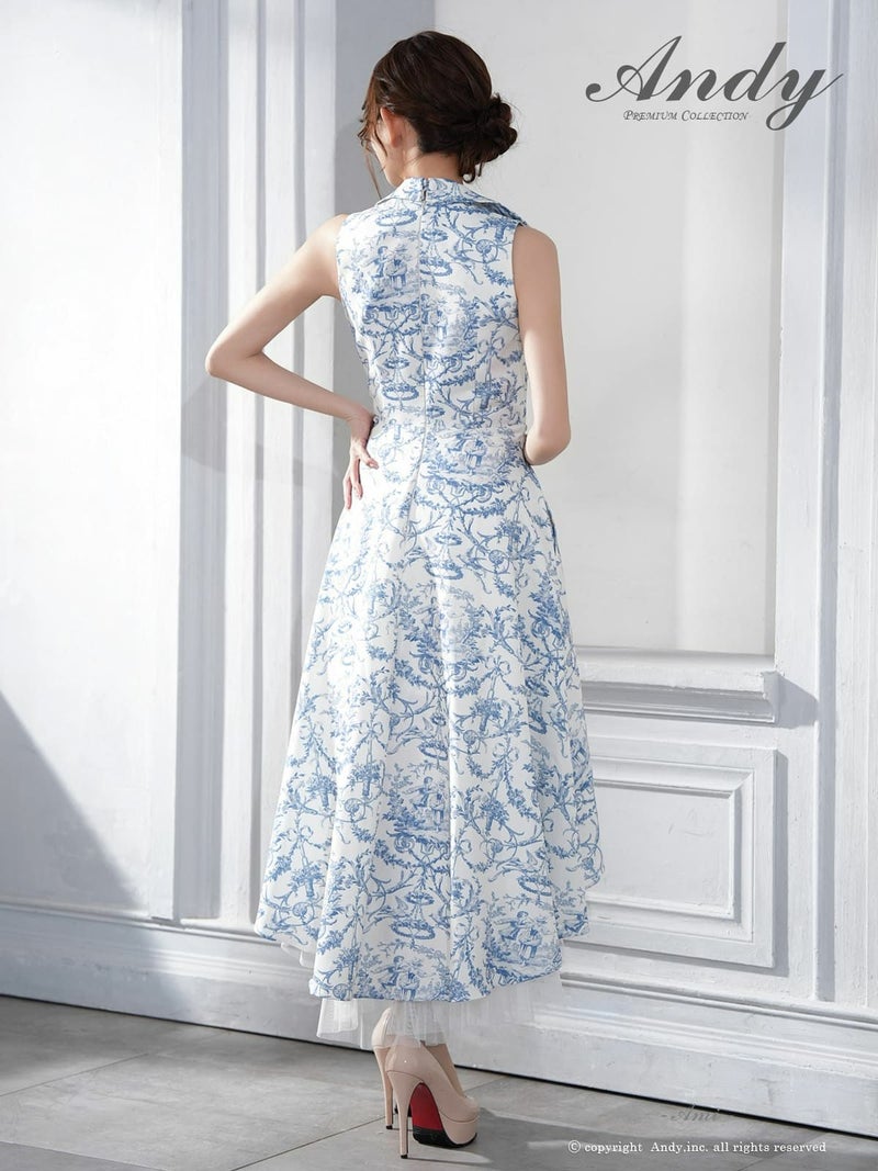 4. [Andy/アンディ] 高級 ノースリーブ Aラインロングドレス トワルドジュイ柄  襟デザイン