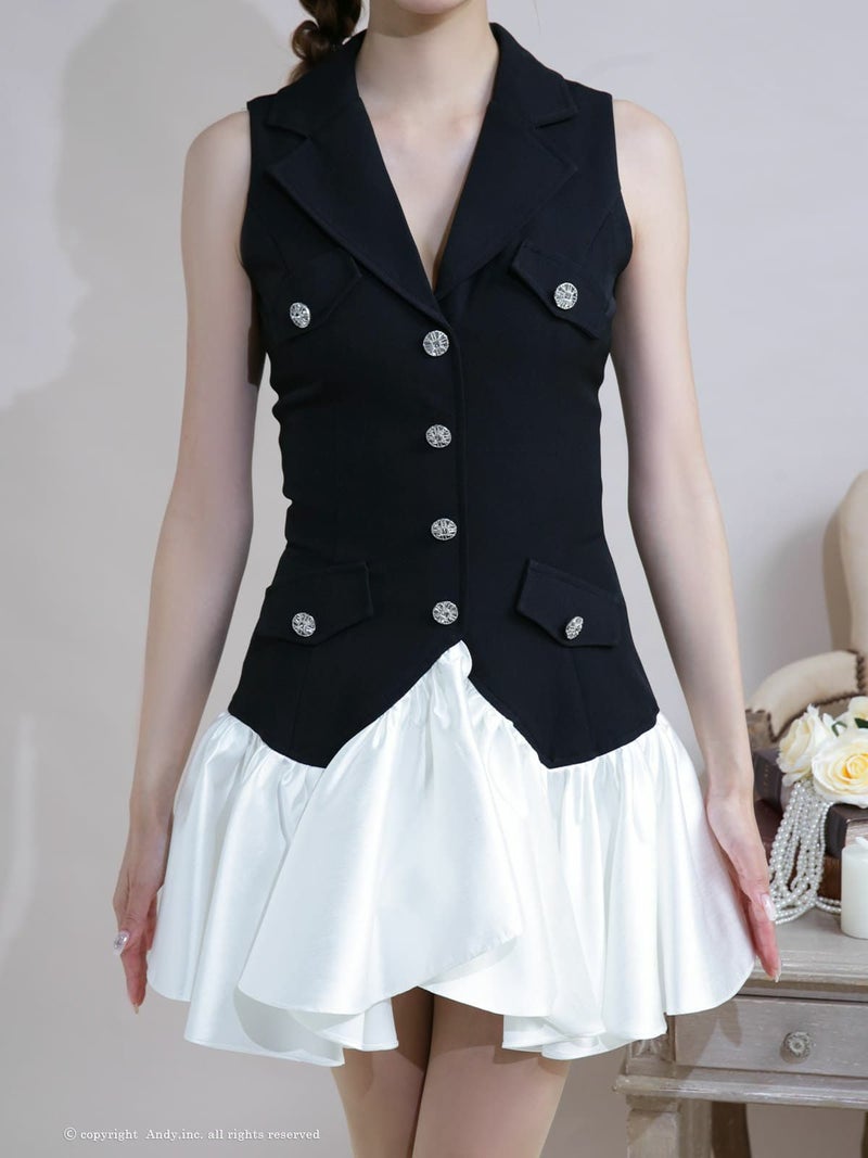 ふんわり広がるスカートが可愛い♡ [Andy/アンディ] 高級 Aライン ミニドレス シンプル 上品 ノースリーブ 襟付き