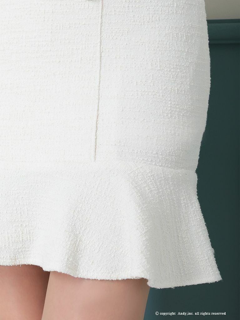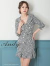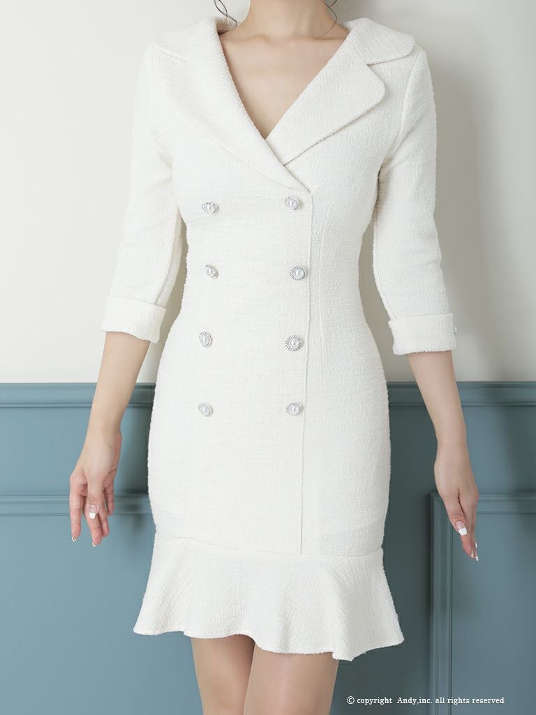 大人っぽい雰囲気でラウンジやクラブにおすすめ◎ [Andy/アンディ] 高級 スカラップ風 襟付き 袖あり 七分袖 ツイード タイトミニドレス
