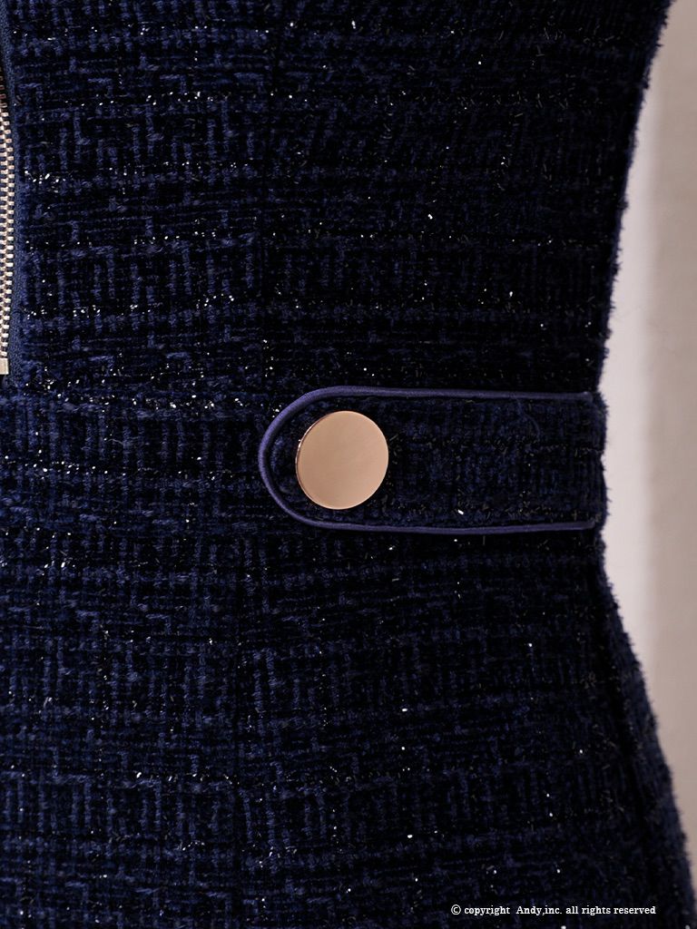 ラメツイードが上品に煌めく☆ [Andy/アンディ] 高級 2way 長袖 袖あり 襟付き ジップ ラメ ツイード ウエストベルト タイトミニドレス