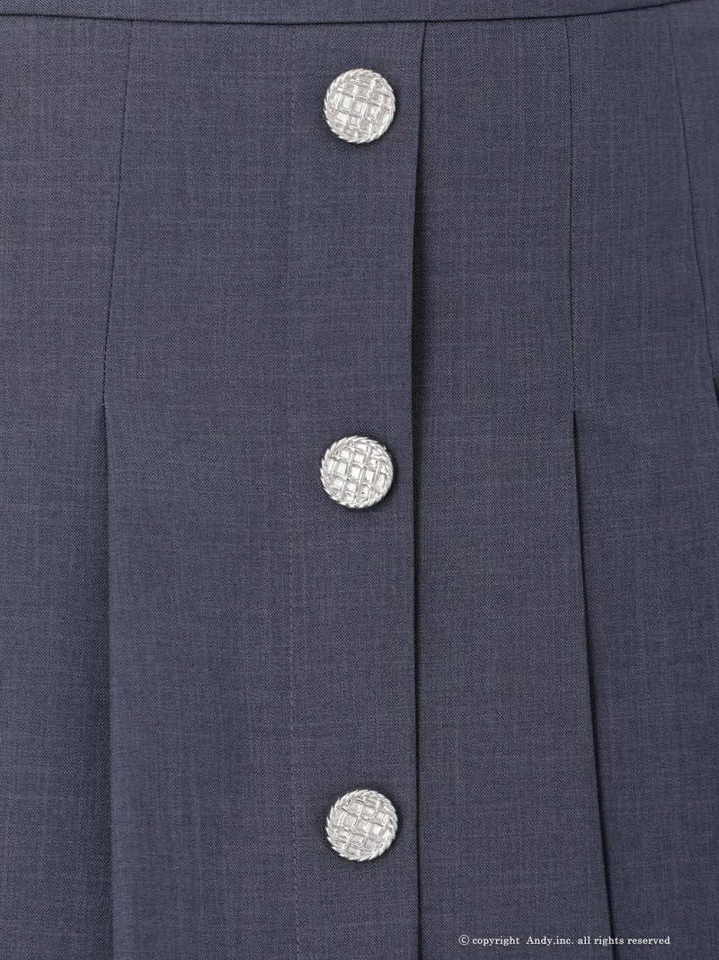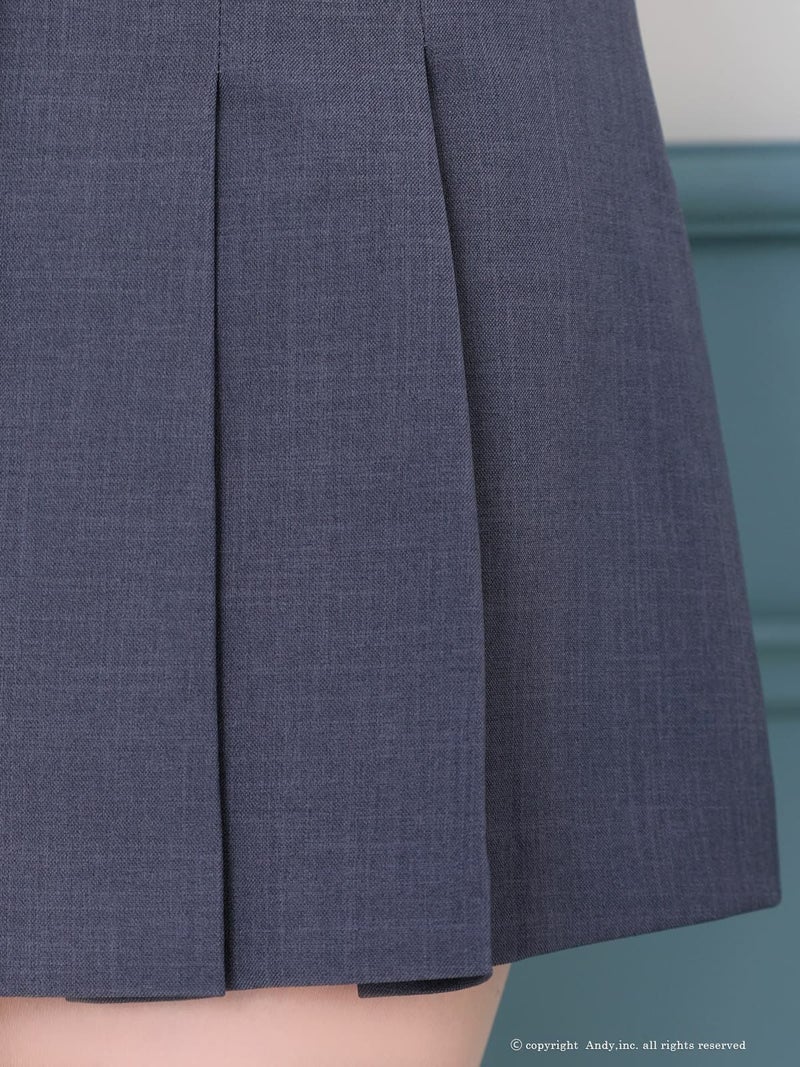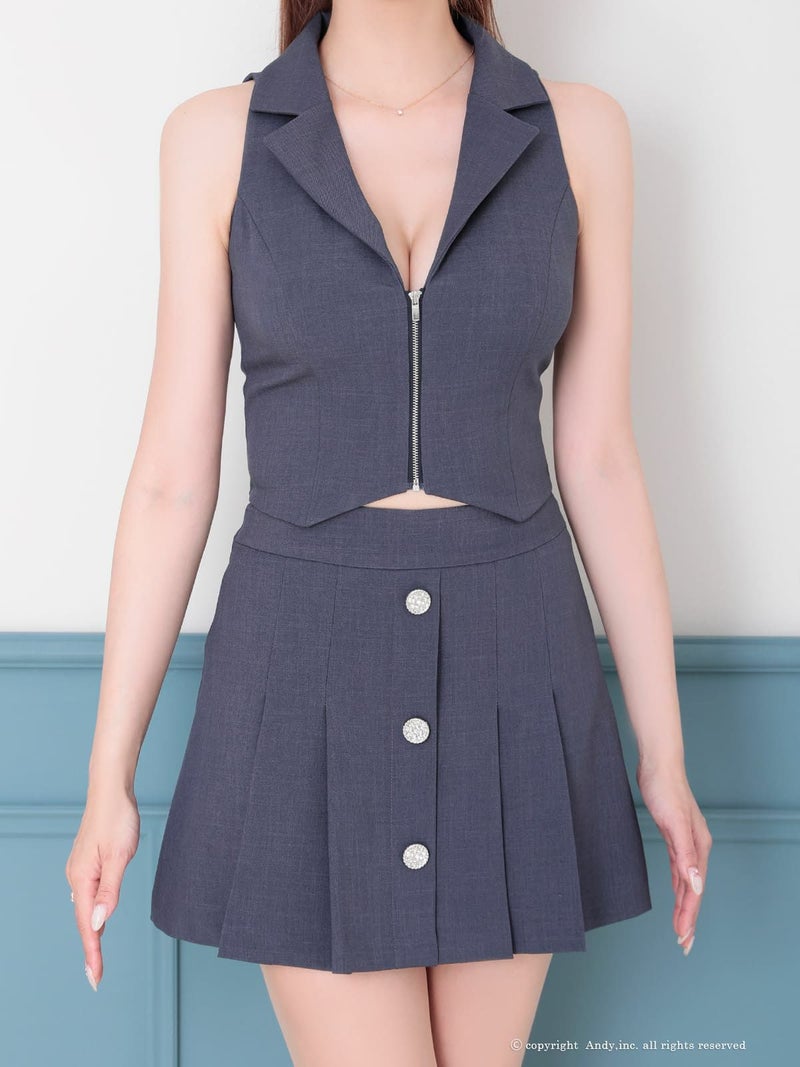 ワンカラーのセットアップ◎ [Andy/アンディ] 高級 ノースリーブ 襟付き プリーツ ジップ ワンカラー セットアップ フレアミニドレス