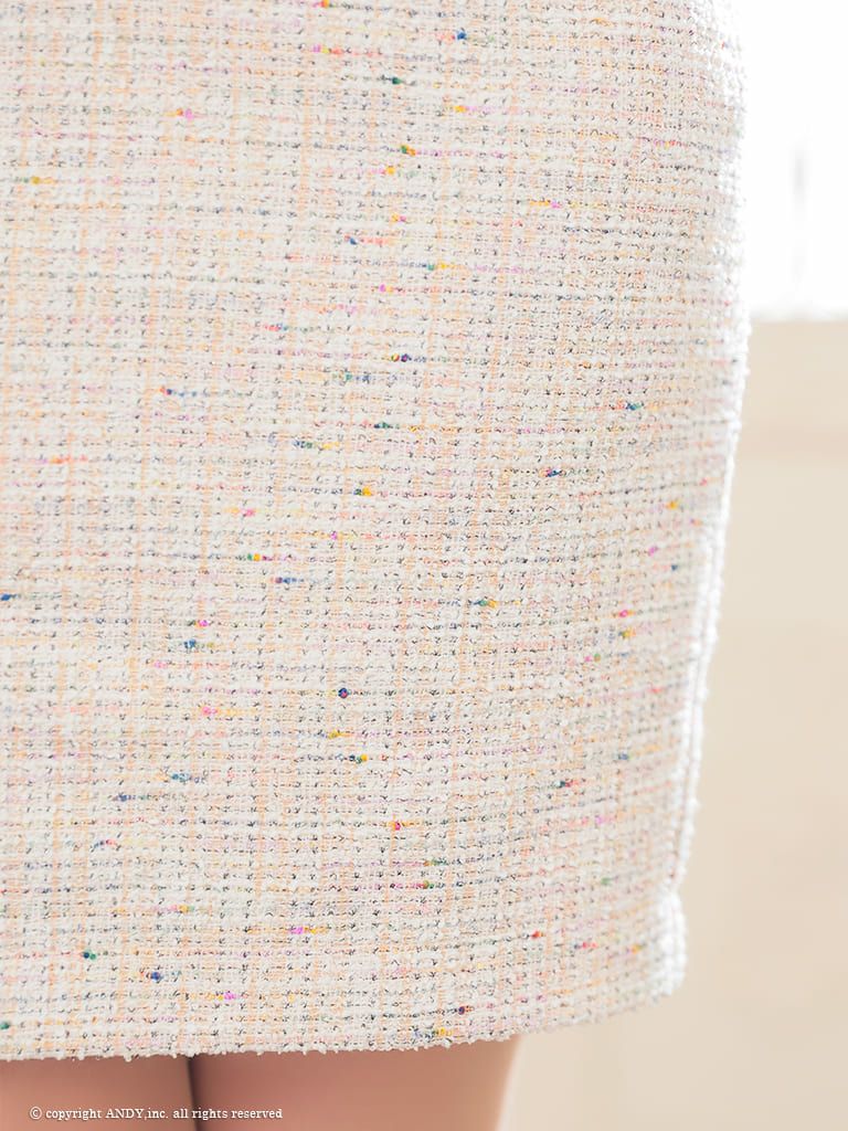 4. [an/アン] 高級 ツイード 襟付き フロントジップ ノースリーブ タイトミニドレス