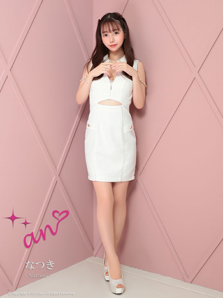 キャバドレス an アン 高級ノースリーブ襟デザインウエストカットジップチェーンタイトミニドレス