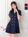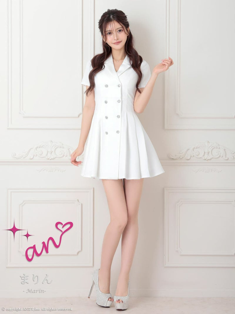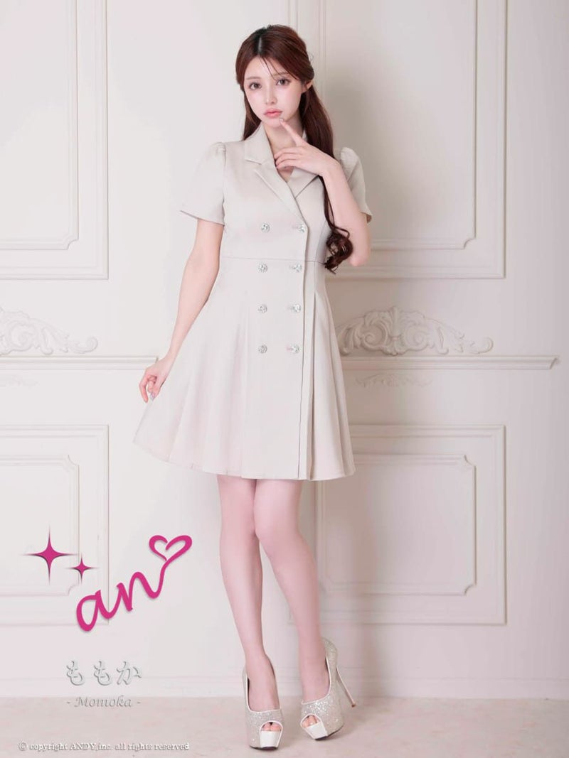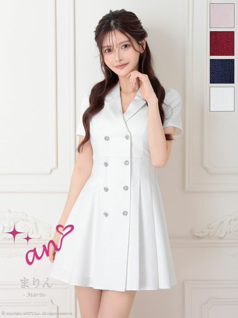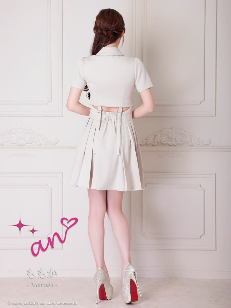 キャバドレス an アン 高級 半袖 襟付き バックカット プリーツ フェミニン フレアミニドレス