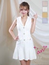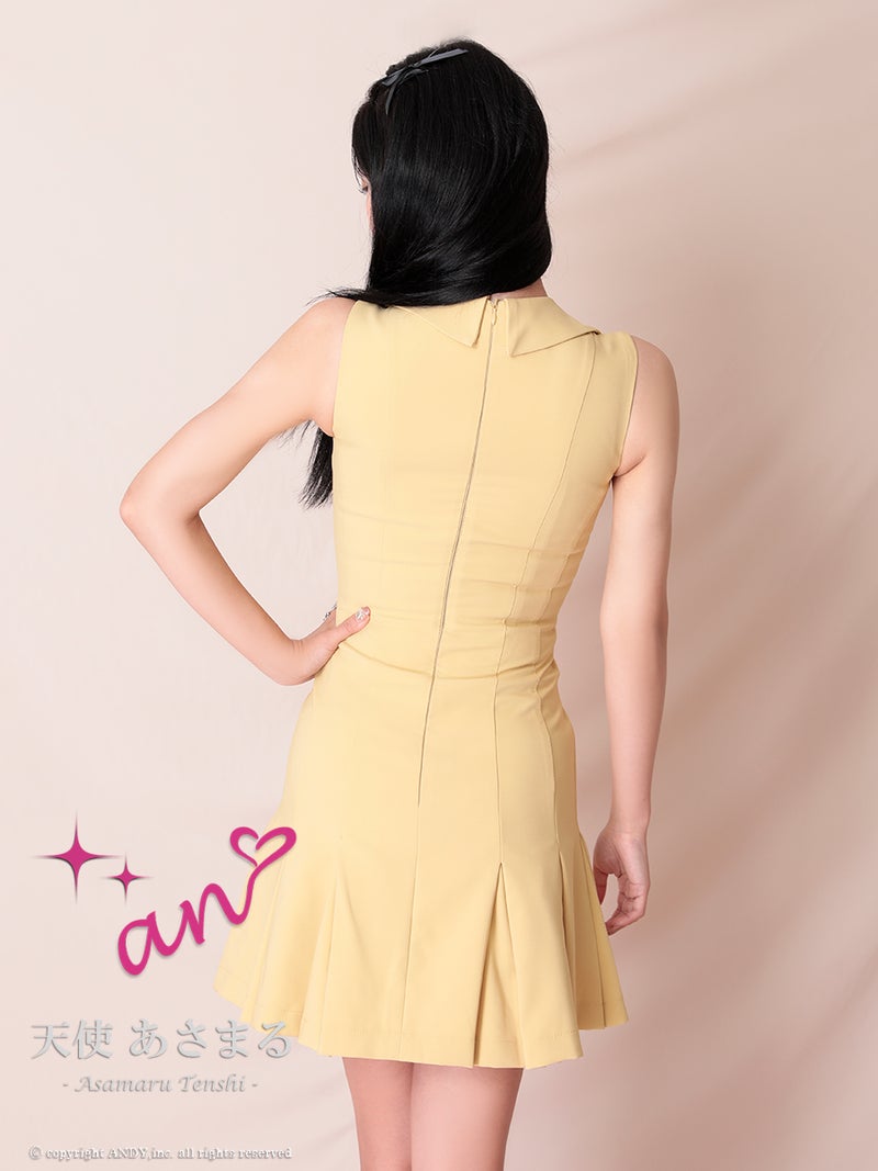 パールボタンが高見え♡ [an/アン] 高級 ブランド Aラインミニドレス ノースリーブ 襟付き ワンカラー プリーツ パールボタン トレンチ風