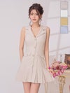 高級 ノースリーブ 襟付き ワンカラー プリーツ パールボタン トレンチ風