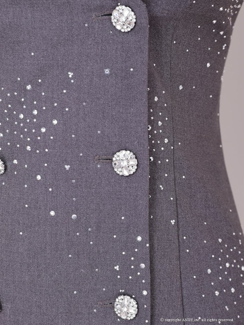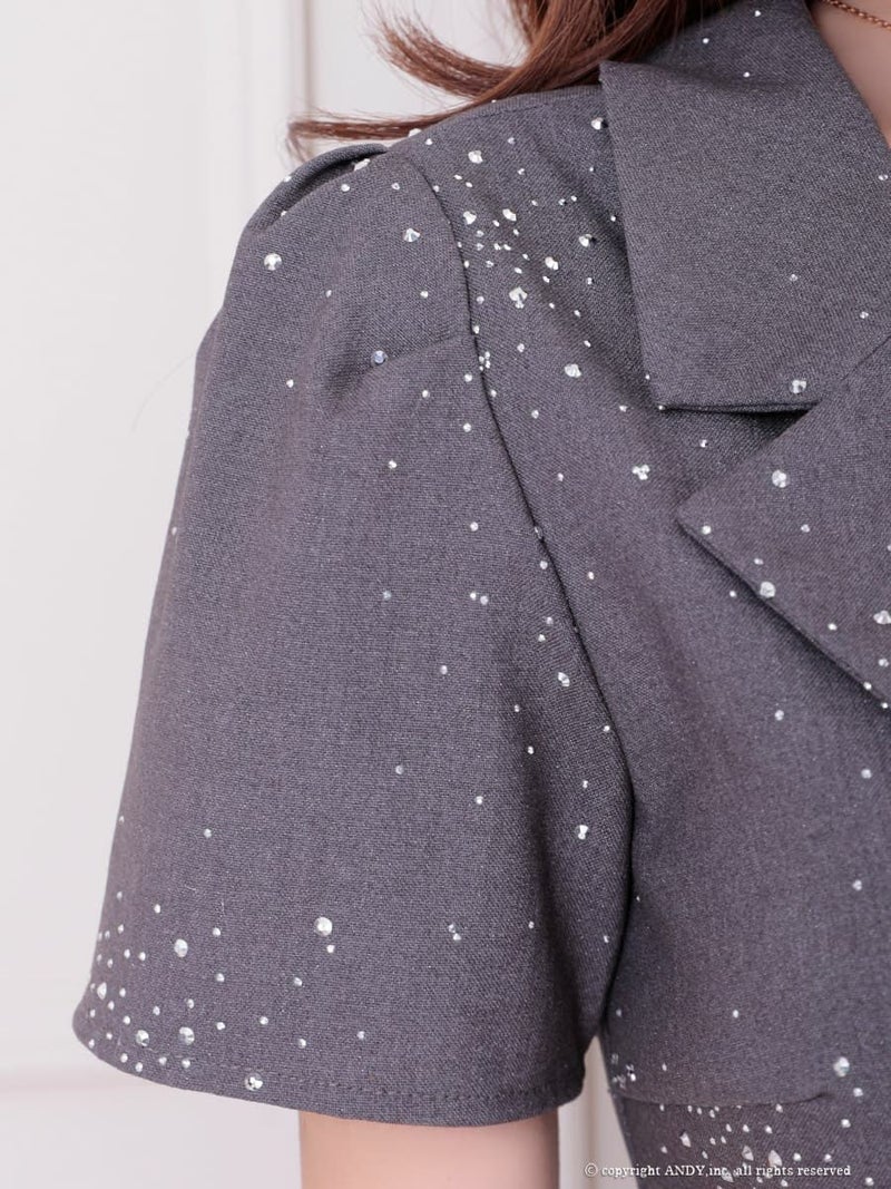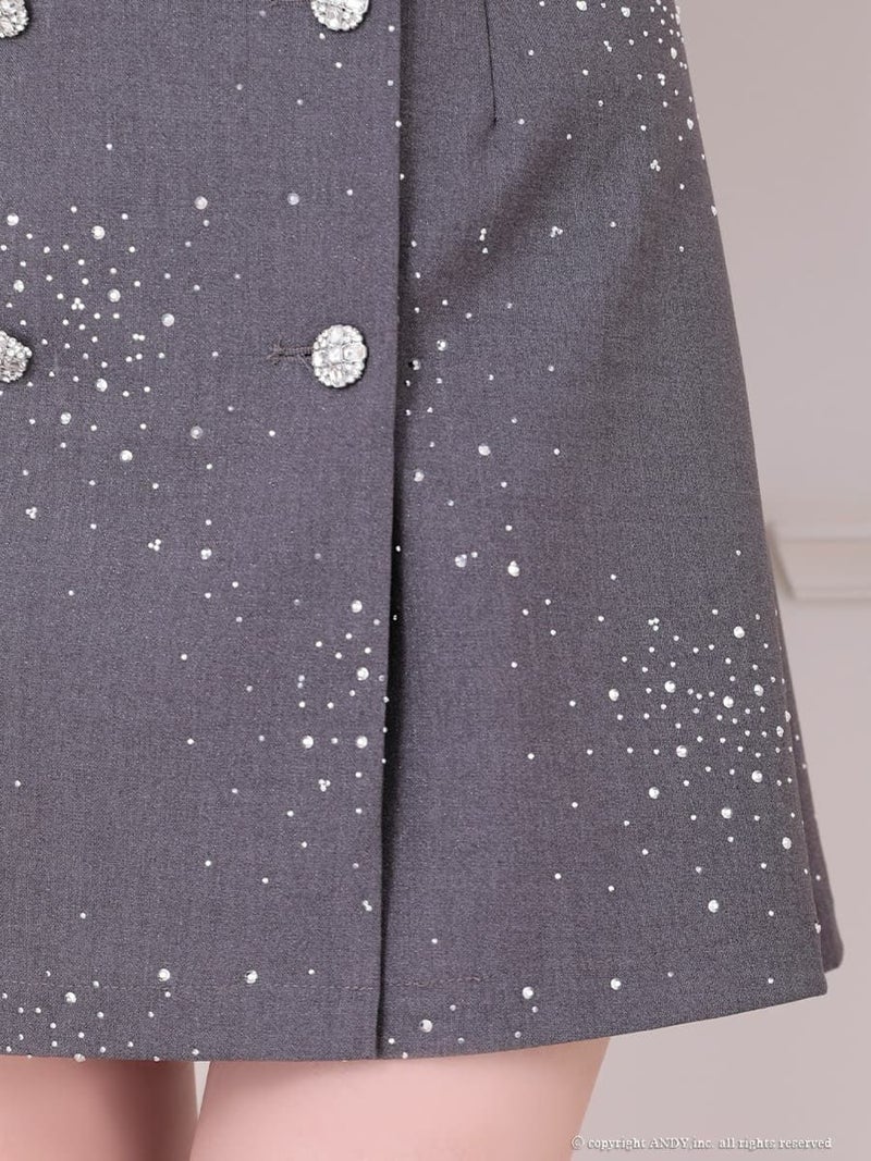 4. [an/アン] 高級 半袖 ワンカラー ビジュー 襟付き パールボタン フレア ミニドレス